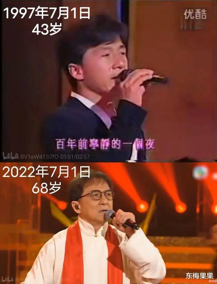 前两天成龙还在庆祝香港回归25周年,他这次在晚会上唱了《中华力量》,1997年那次他唱的是《龙的传人》。看着他才觉着,一个时代的终结是要以另一个时代相送的。