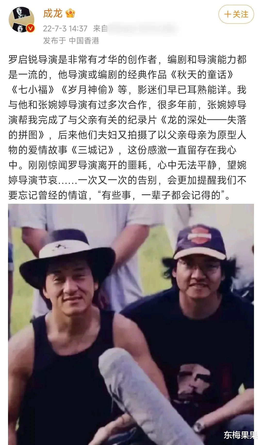 连成龙也在感慨,昨天是怎么了?因为拍出《岁月神偷》和 《秋天的童话》的香港导演罗启锐,也是昨天去世的,成龙下午才在微博发了篇长文,以此来告别怀念罗启锐导演。