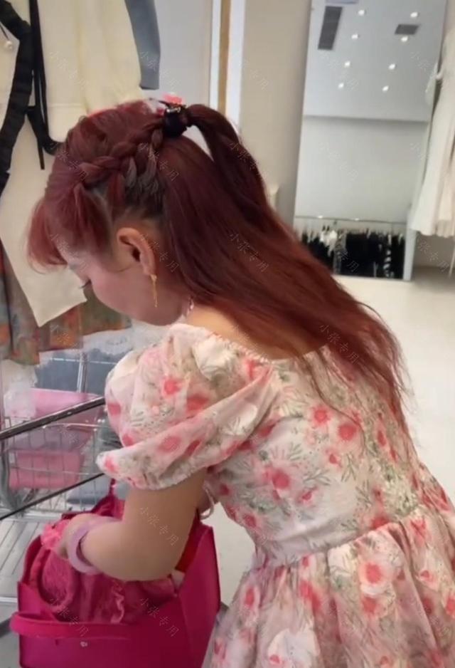 这天,女子进店买衣服,刚好看中了店里的一件连衣裙,她穿着粉色碎花连衣裙在镜子面前左看右看,又觉得自己的妆容好像淡了点,她想补个口红,便从蕾丝花边的手提包里拿出一个塑料袋,塑料袋里装着她的化妆品。