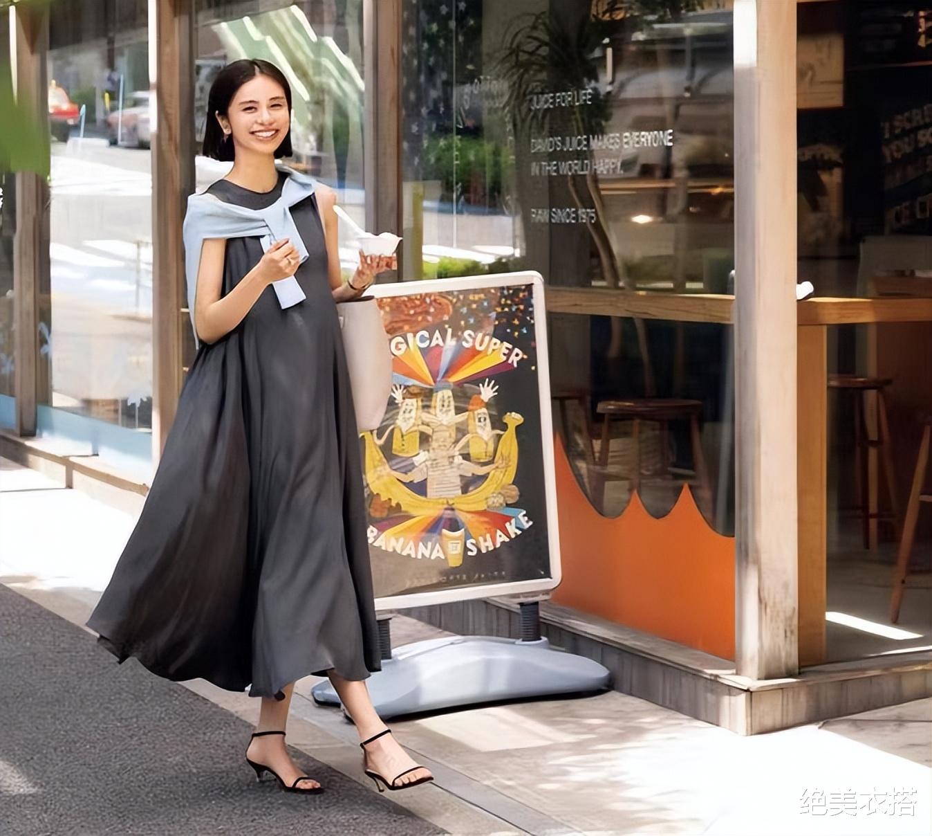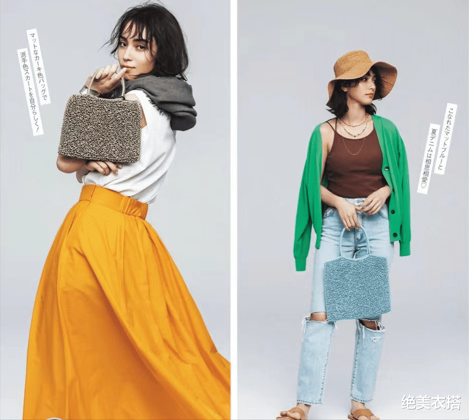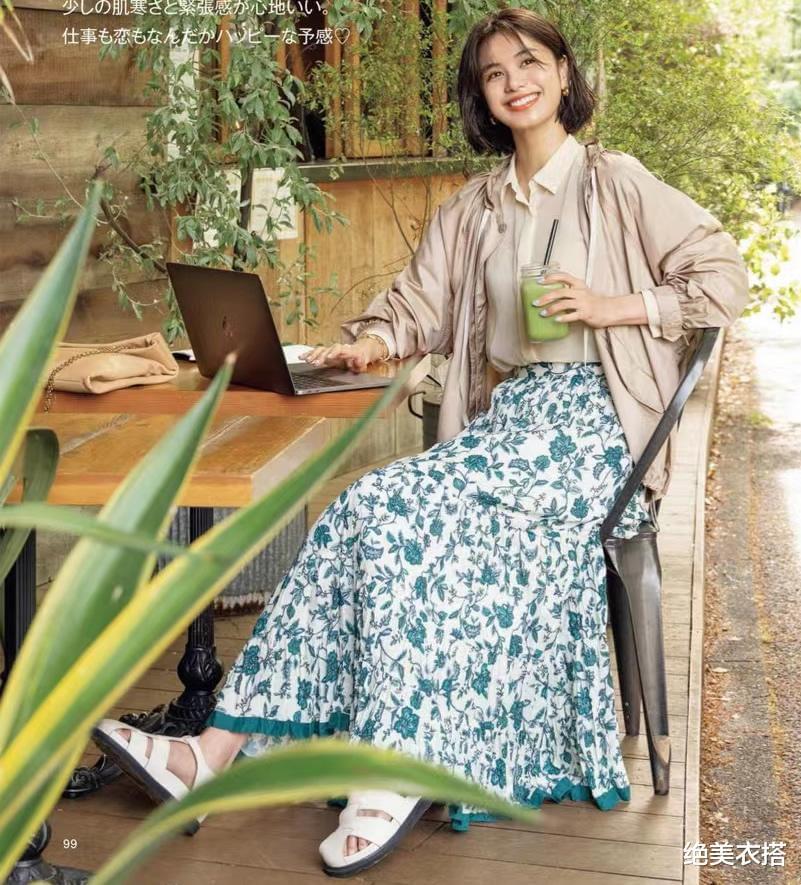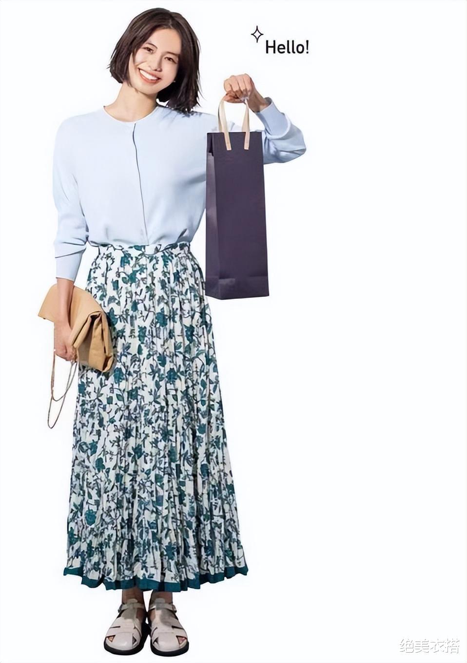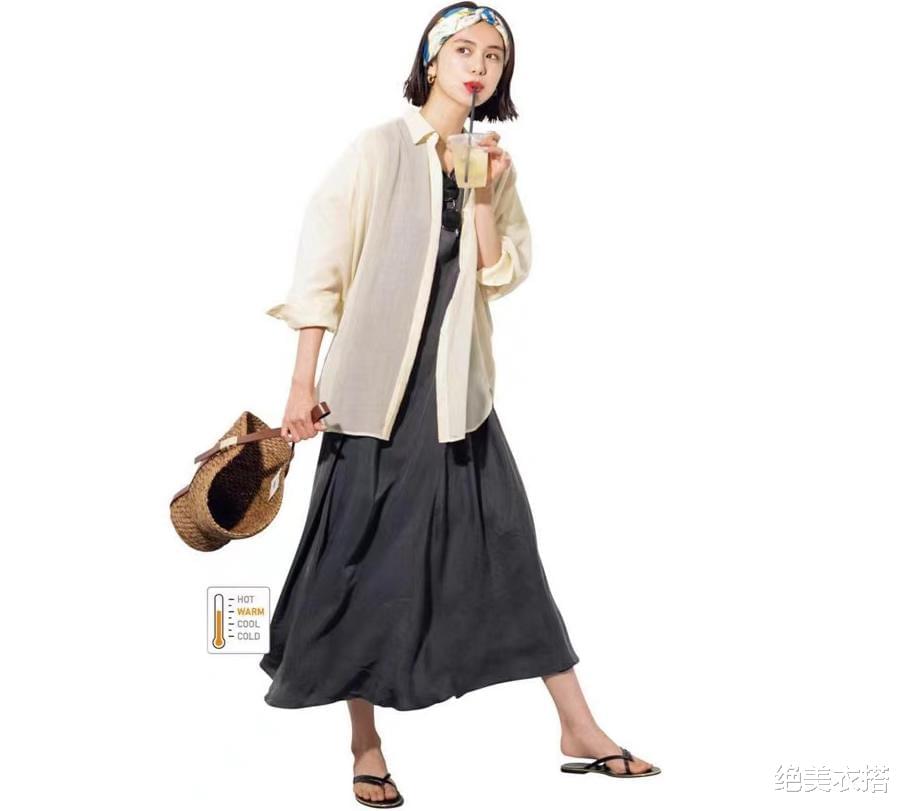 从高雅的针织衫到休闲的大衬衫,外搭一变,风格迥然。再配合凉鞋、菜篮包、发带,是不是要去逛街买菜?嘿嘿。