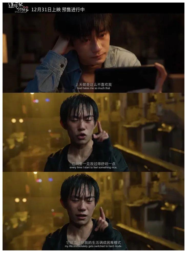 《送你一朵小红花》他挑战了癌症少年,饰演的韦一航内心有怨怼,外在却装得吊儿郎当。他有十分接近生活中普通男生的一面,又因为癌症放大了心中的脆弱和敏感,以至于电影里的重场戏一个接一个。