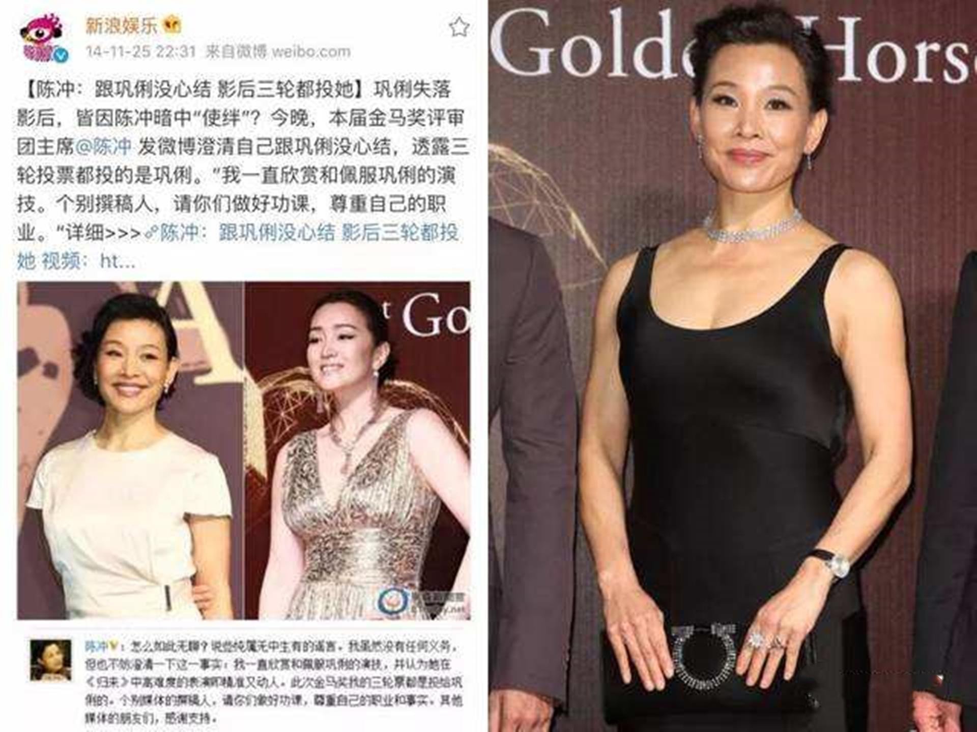 之后,还有媒体爆料,之所以巩俐没有得奖,是因为这一年的评审团主席是陈冲,而她与巩俐不和。这则消息出来之后,顿时让陈冲陷入了争议之中。无奈之下,陈冲不得不在自己的社交媒体发文表示:“我一直欣赏和佩服巩俐的演技,并认为她在《归来》中高难度的表演即精准又动人。”同时还指出,这三轮投票,她都是把票投给了巩俐。
