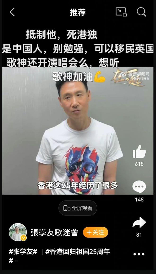 7月1号,是香港回归25周年的大日子,作为“四大天王”之一的张学友也是出镜说了一些感慨。