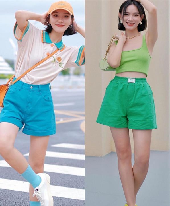 夏天是一个生机勃勃的季节,充满着鸟语花香,想要与整个环境更加完美的融合,在穿搭时,对于年轻一点的女性来说,也可以选择一些大胆的风格,进行尝试。比如一些亮色系,这种彩色短裤,更能打造一种青春时尚的感觉,对于想要凸显自己的风格和个性,让整个人在夏天看上去,更加耀眼的女生来说,一定不能错过。色彩的饱和度比较高,也成为了整体造型中的一大亮点,想不吸睛都难。