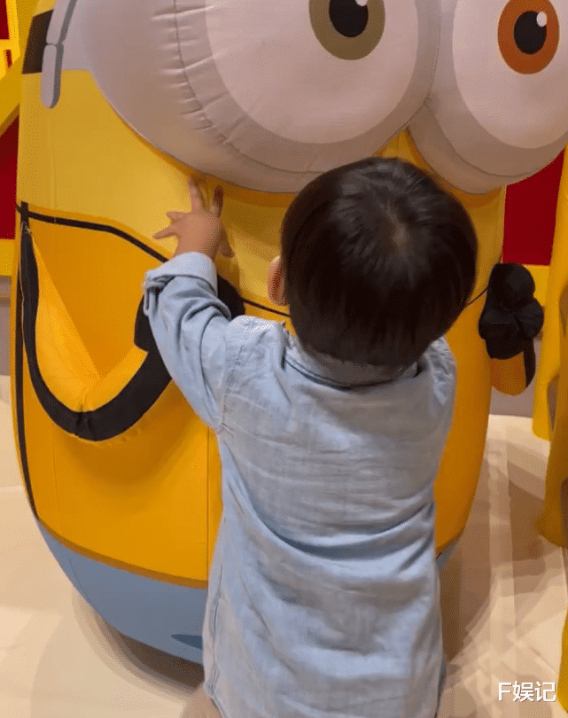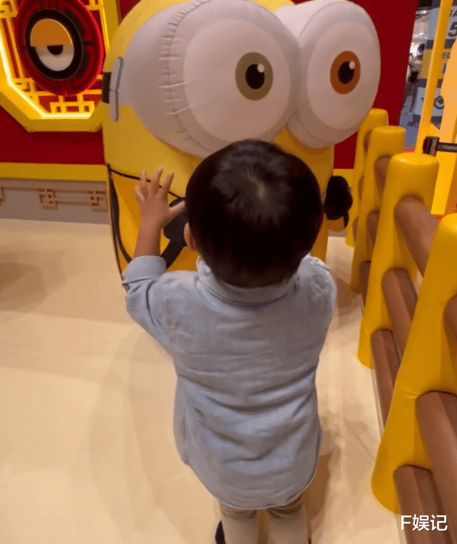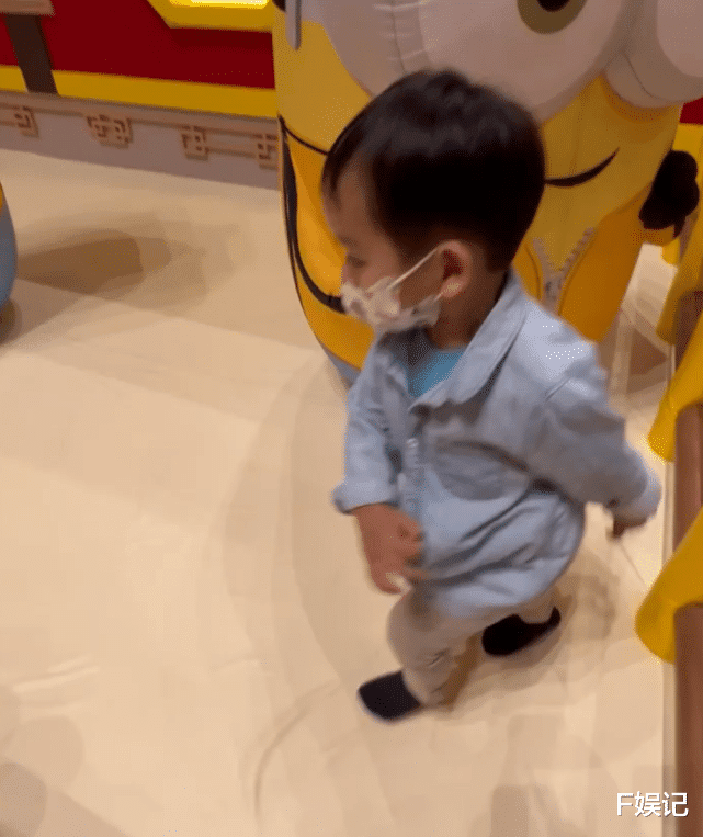 其实一起去看电影的还有小儿子,小儿子看到玩具就很开心,他现在已经能够独立走来走去玩耍。