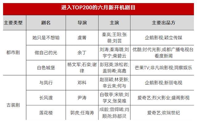 都市剧《她只是不想输》《做自己的光》《白色城堡》近期开机的都市剧,《她只是不想输》和《做自己的光》都是女性题材,《她只是不想输》由近年来有多个独立职业女性角色塑造的秦岚领衔;《做自己的光》由刘涛、秦海璐领衔主演。不得不说,“女性独立”作品虽然一直是近年的创作热门,但观众兴趣已经一再被消耗,且如何做到不停留在嘴上而是打入观众心里还是需要对剧情扎实度有高度要求。在大量同质化题材的挤压下,两剧虽然卡司都有一定厚度,仍然面临诸多挑战。《白色城堡》则是由名导杨文军执导的医疗职业剧。近期,《关于唐医生的一切》正在播出,更专业的医疗职业剧已经逐渐受到了一些观众的关注,市场正在培养中,但后者的播出效果也启示着这类专业题材更需要思考自身目标受众,做到更有效的剧情安排与成本控制。
