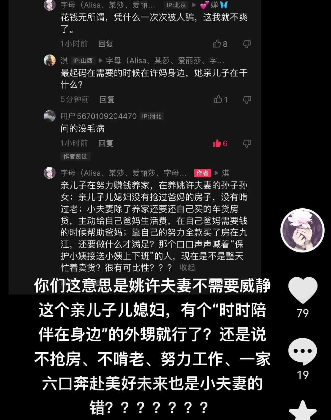 姚威田静现在都是上有老下有小的年龄,正是压力最大的时候,还是应该一切从实际出发,又何必因为姚威田静陪伴许妈的时间少就去指责姚威不孝顺呢?