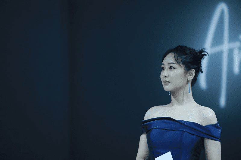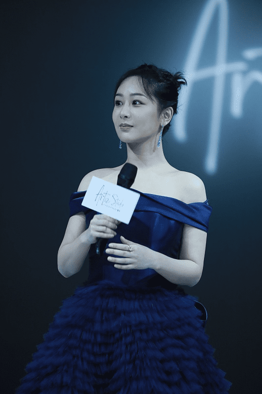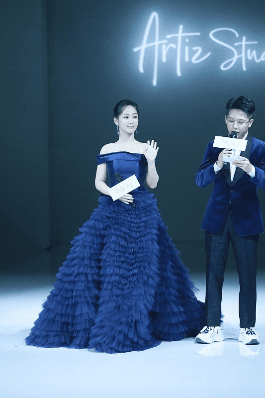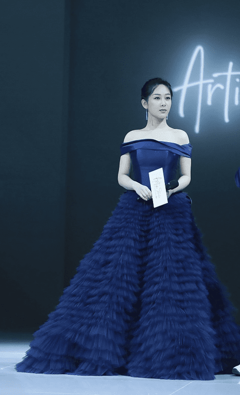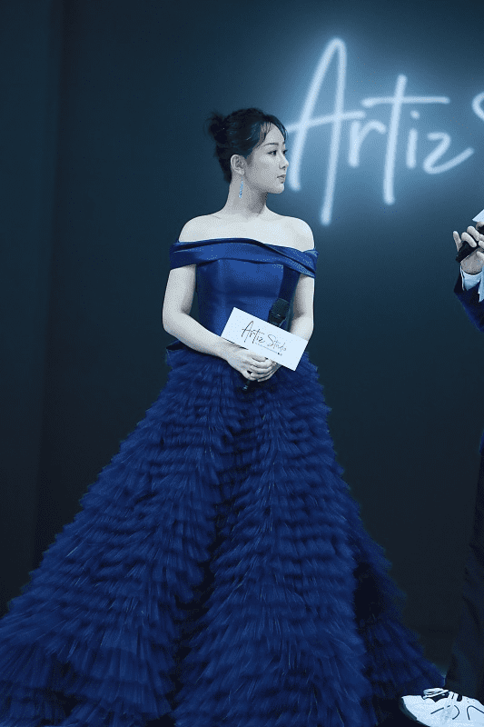而且深蓝色也是很有魅力的色彩,体现出端庄大气美,不过92年的杨紫年纪真不大,但把自己打扮得老了,好在气质不错能撑住,让服装变得更好看。