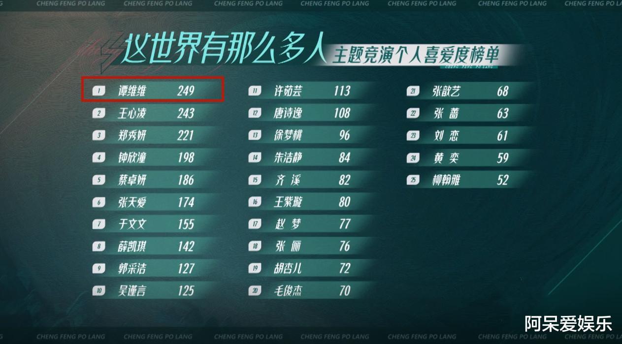 第三次舞台公演谭维维获得249票,全场第一。