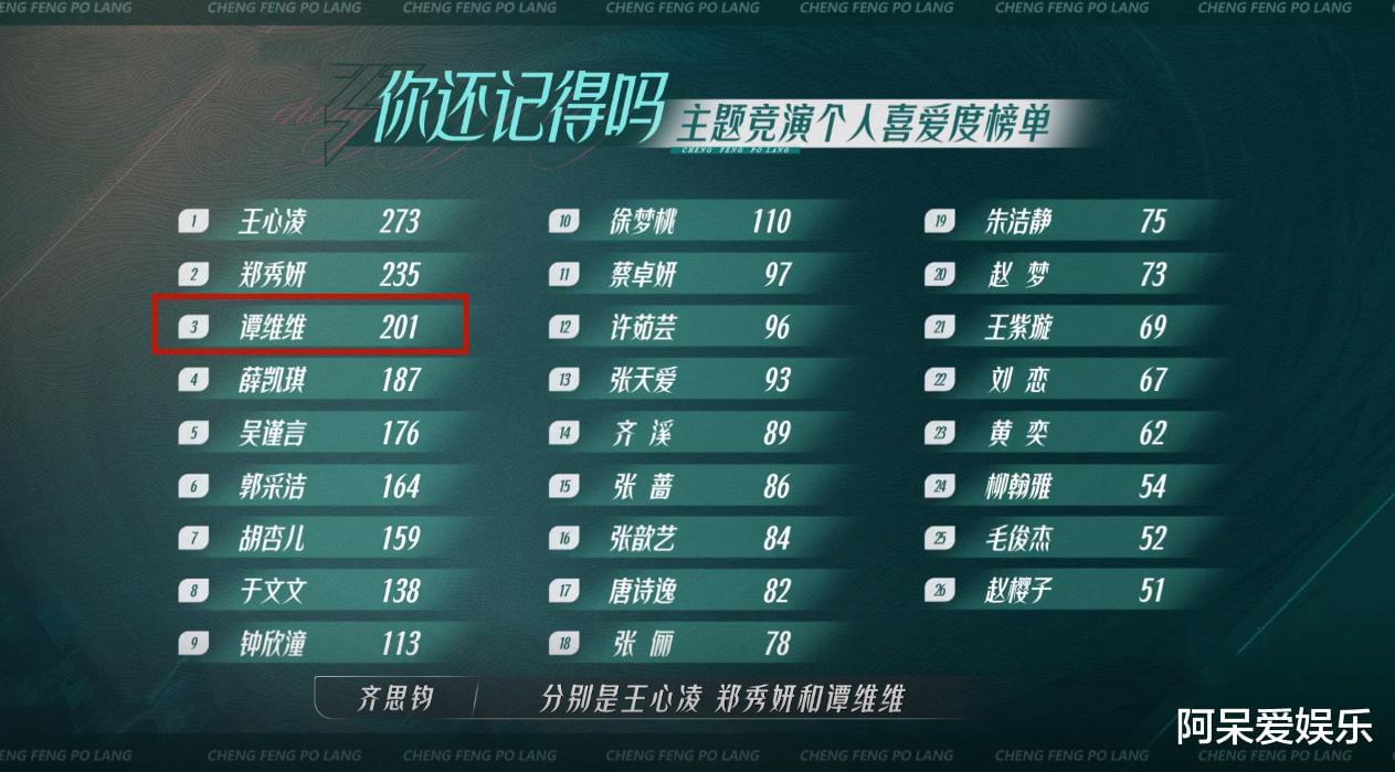 第二次舞台公演谭维维获得201票,全场第三。