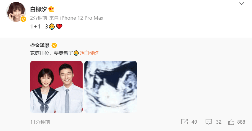 而官宣结婚的同时,白柳汐也同时官宣了怀孕的好消息,这就等于是奉子成婚,喜上加喜了。