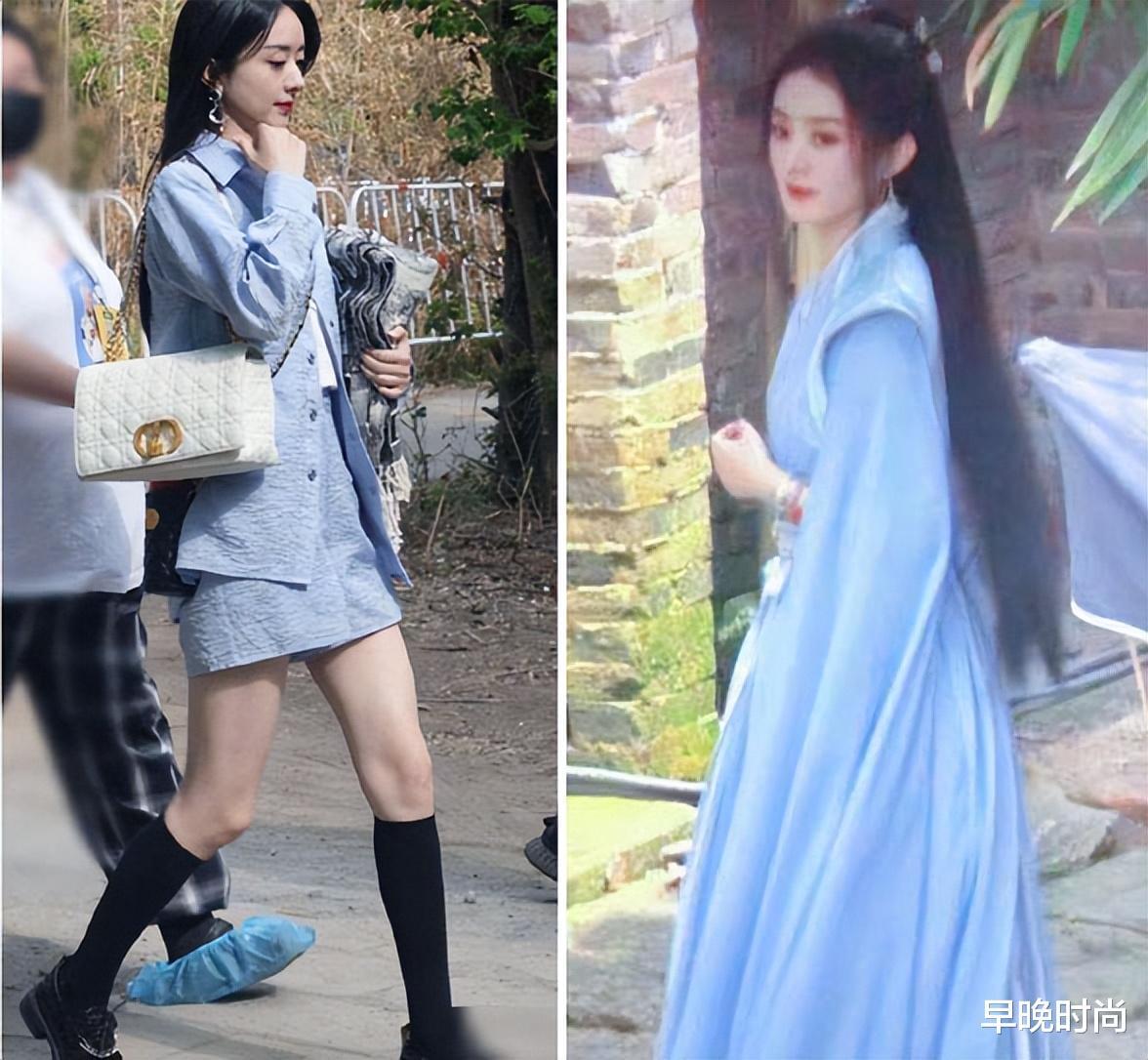 姐姐和蓝色系的适配度实在太高了,离婚后第一个综艺路透,就是穿的一身蓝色短裤造型,这张照片相当出圈,清冷干练又不失温柔,还带着几分学生气。她很多出圈的角色和活动造型都是蓝色系,前段时间开拍的新剧《与凤行》也是。