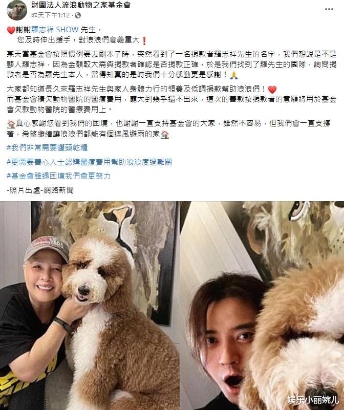 事后罗志祥也分享了流浪动物之家的贴文写道“感谢你们对毛小孩的用心照顾,辛苦了!”,同时也呼吁大家多关注流浪动物,让毛小孩能感受到大家满满的爱。