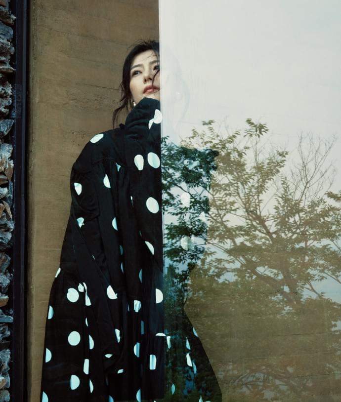 这组照片中可以看出,高圆圆穿着一身时尚的大波点元素的服装。具有十足的时尚感。