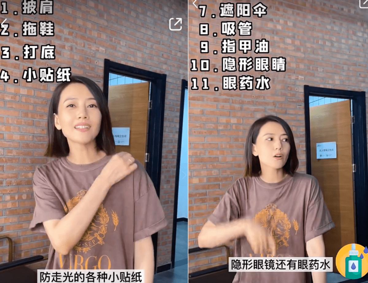 这个是高圆圆在社交平台上分享的开箱视频,高圆圆详细地讲解了箱子里各种用品。