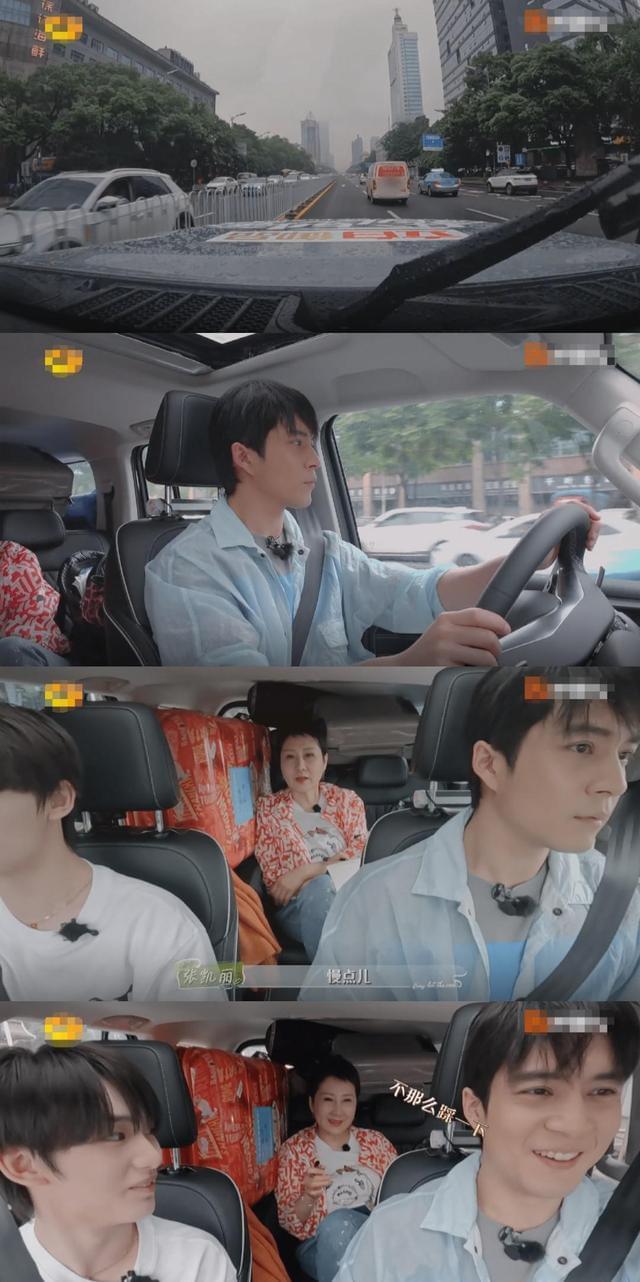 开惯快车的韩东君,一路都是高速前进,突遇前面一辆小货车压线变道,立即来了个猛刹车,坐在后排的凯丽姐,一下子晕了起来,连忙让韩东君开慢点,刹车别这么猛。