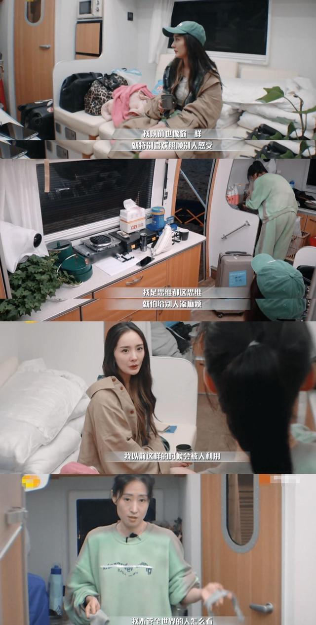 终于,杨幂作为性格耿直的人,也实在忍受不了刘敏涛的这种性格和处事方式了,直接在房车上就跟刘敏涛当面对峙,说“我以前也像你一样,就特别喜欢照顾别人感受”,敏涛就回了“我就这思维,我就怕给别人添麻烦”,杨幂接着说“我以前这样的时候就会被人利用”,可刘敏涛丝毫没听进去,甩了一句给杨幂,说“我不管全世界的人怎么看,我就这样”。