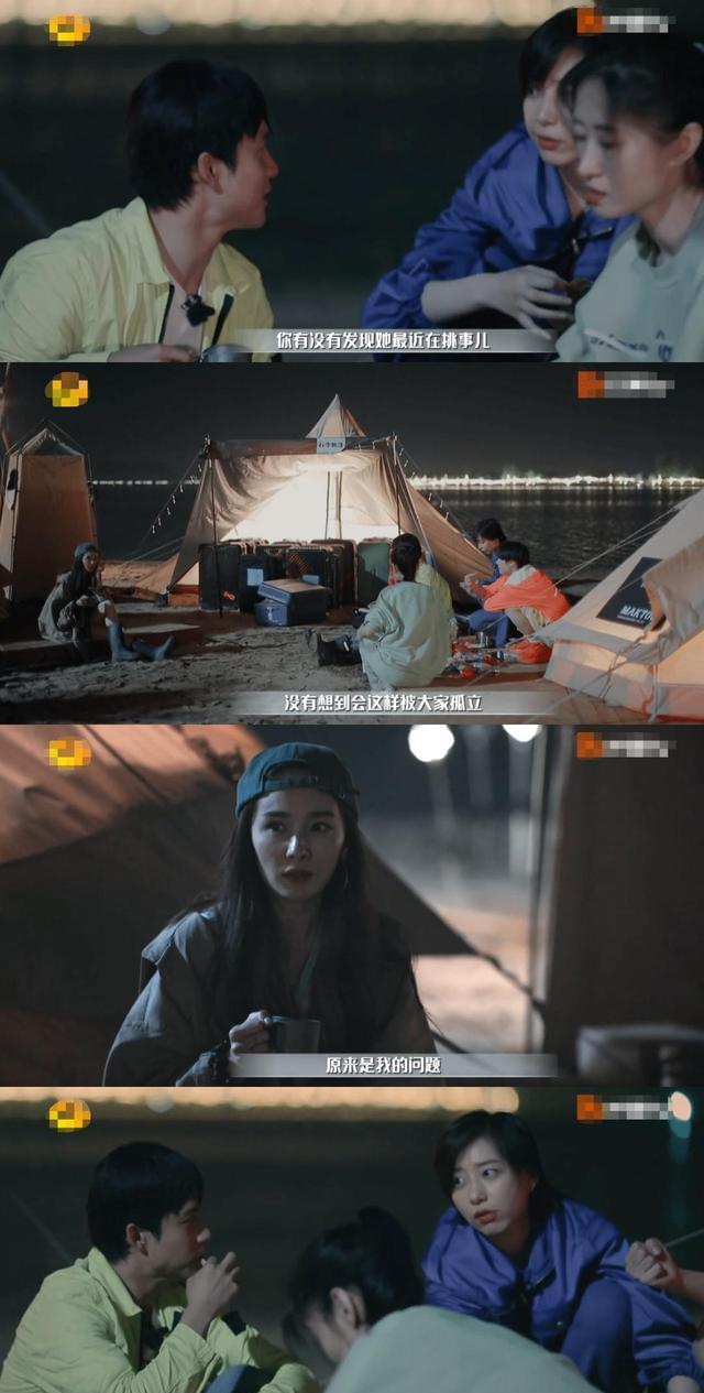 一心只想为敏涛姐好的杨幂,越想越不服气,就对着其他小伙伴说“有脾气就一定要发出来”,没想到就这么一句话,被韩东君解读成“杨幂这是在挑事儿”,然后我们看到的画面就是,其他人坐在一块儿,杨幂独自一人坐在一边,心里想着“没想到自己会被孤立,原来这是我的问题”。