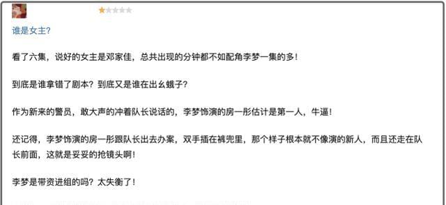但李梦身为女二号,在前期播出的剧情中,戏份比女一号邓家佳还要多,引发观众的不满情绪。