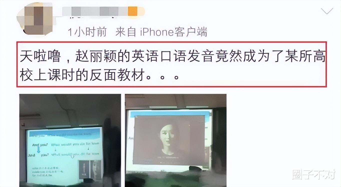 更甚者,还有高校将赵丽颖的发音写进了英语教材,再编个PPT,把这当做“差生案例”来纠正学生发音。