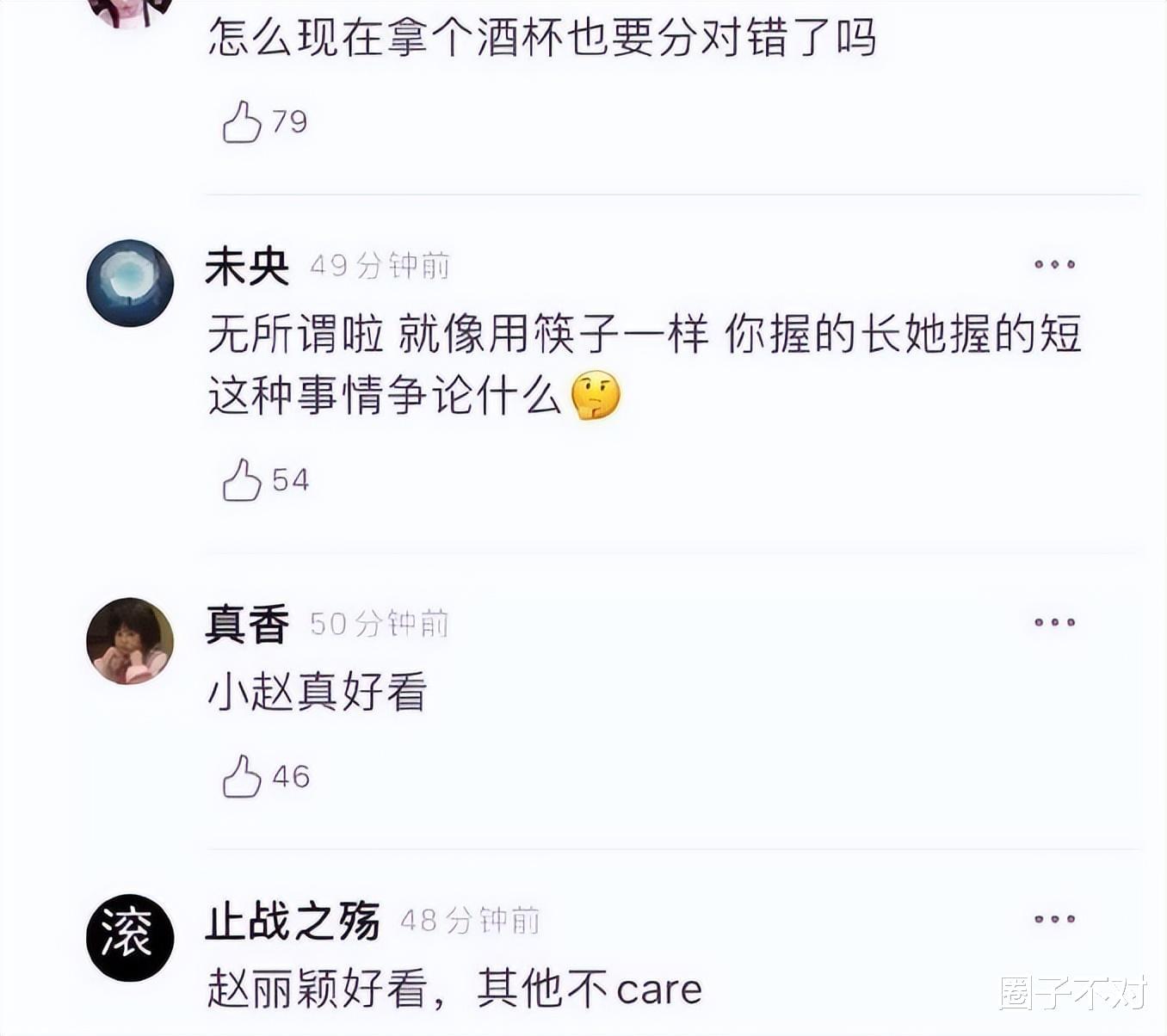 就是这个举动,让赵丽颖被扣上了“土老帽”的帽子。因为在传统的饮酒礼仪中,人的手不能碰到杯腹,只因手指的温度会影响到美酒的口感。
