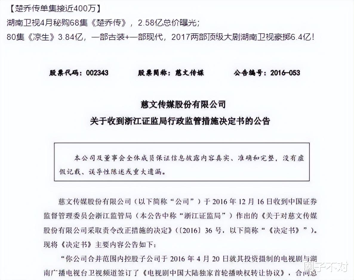 据证监局的文件显示,《楚乔传》仅面向湖南卫视,就卖出了2.58亿的天价,更别提还有网播联播等后续,赵丽颖也因此狠赚了一笔。