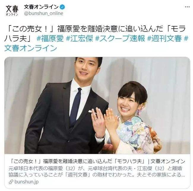 不过可惜,这一段婚姻在2021年2月,因为福原爱与陌生男子出入酒店,而进入了危局。