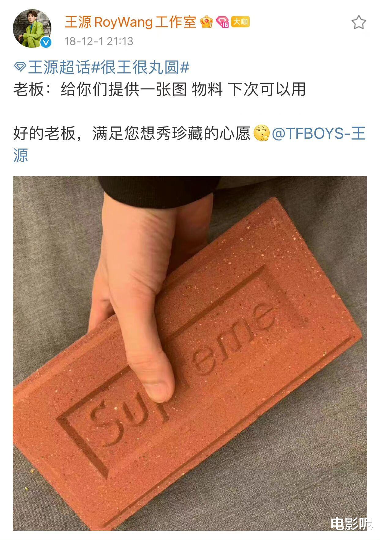 首先,装修就需要基础建设。王源以前钟爱superme这个品牌,就很离奇地购买了一块砖头,大家还笑话王源真的是爱到盲目了,什么都想买。但是,现在再回头发现王源也许是这个时候就给我们启发了。而且这个砖头确实是取想法自装修用的红砖,虽然大家都说实用性为零。