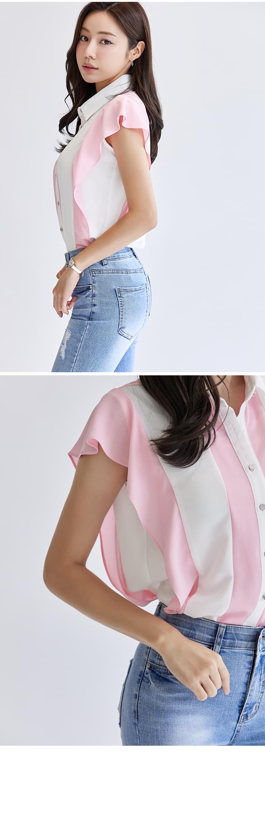 彩色条纹翼线雪纺衬衫