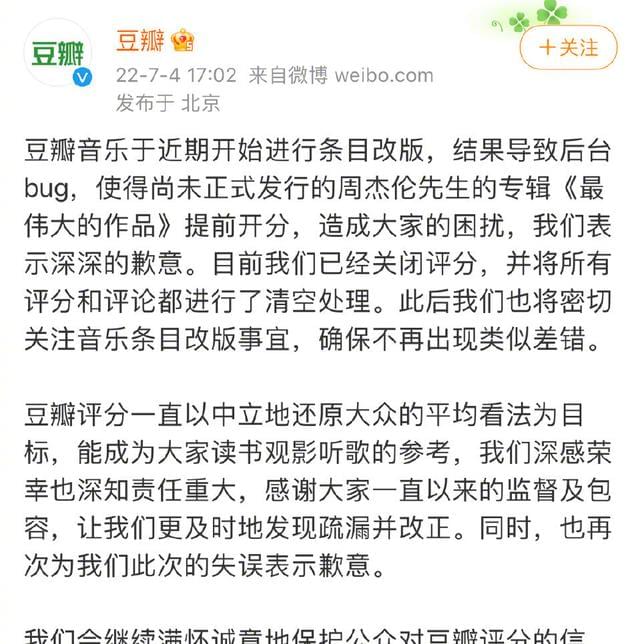 引发舆论关注后,豆瓣官方发文解释了缘由,并公开道歉。