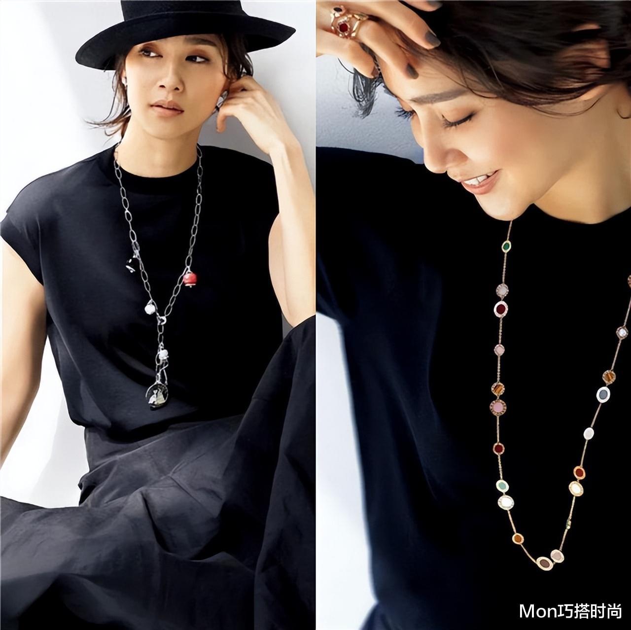 你可以发现这种长款项链不仅搭配起来困难,它本身的款式和设计看上去也有一些土气感,材质廉价的话,就会显得整个人没有品味,拉低整体的气质还会显得很低廉,让你自身看上去又老又土,像这些材质廉价的长项链都不太适合中年女性搭配哦。