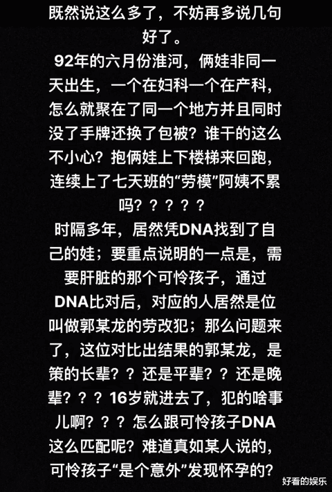 一位资深杜粉(字母),在个人社交账号发了一段长文,爆料姚策不是杜新枝和郭希宽的孩子!时间追溯到92年的6月份,两个不在同一天出生的孩子,却被聚集到了一个地方。