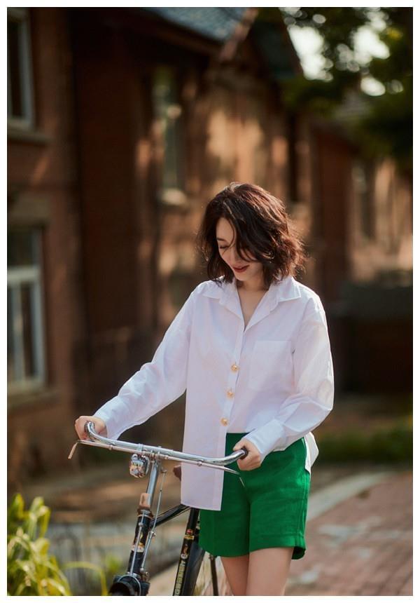 男友风白衬衫+大波浪:魅惑风情拉满宽松慵懒的白衬衫加身充满男友风,微微敞开领口露出一截脖颈线更添性感韵味。衬衫的穿法十分时髦,一半塞进裤腰一半自然垂落来,随意中带着些时尚。下装搭配的是深绿色工装短裤十分帅气。泾渭分明的色彩搭配丰富视觉效果,同时又给人青春活力之感。大波浪短发,凸显出别样的风情,搭配性感的男友风衬衫,魅惑满满。