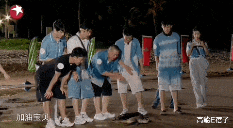 比如,在抢答“绿海龟的性别由什么决定”这题之前,黄明昊、贾乃亮、小岳岳要背着渔村阿姨,做五个深蹲。最快完成的人才能抢答。