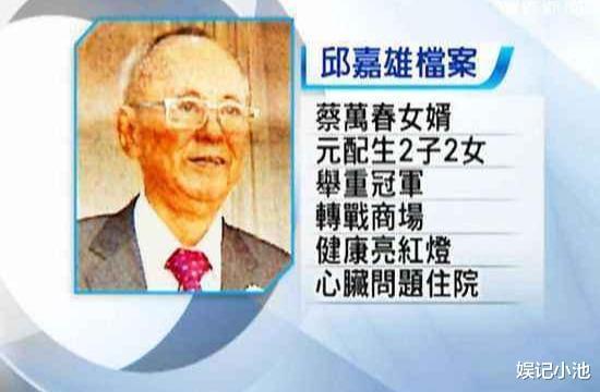 尽管林月云一直不被侯家承认,但侯佩岑却深得侯家人的喜爱。不管是侯世宏本人,还是他的妻儿们,对侯佩岑一直是认可和疼爱的。甚至在多年后(2008年)侯世宏的葬礼中,侯佩岑还以孝女的身份出现在侯家祠堂,哭得几度昏厥,从这一点也可以说明,侯家对待侯佩岑相当友善。在林月云结束了和侯世宏的感情纠葛之后,迅速又有另一个男人走入了她的生命,他就是上文提到的蔡贵照的丈夫邱嘉雄。还是先简单介绍一下邱嘉雄和蔡贵照的背景。