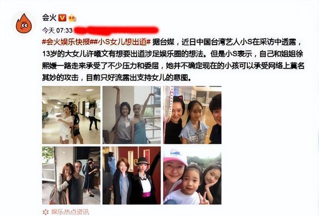 其实,小S在女儿13岁时,就已经炒过女儿想要出道的话题,表示自己不太同意她过早出道,怕她受不了网络压力。