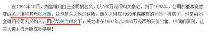 刘銮雄在初期,对关之琳极其宠爱,不仅送上无数珠宝、豪车,甚至为关之琳买下数栋豪宅。