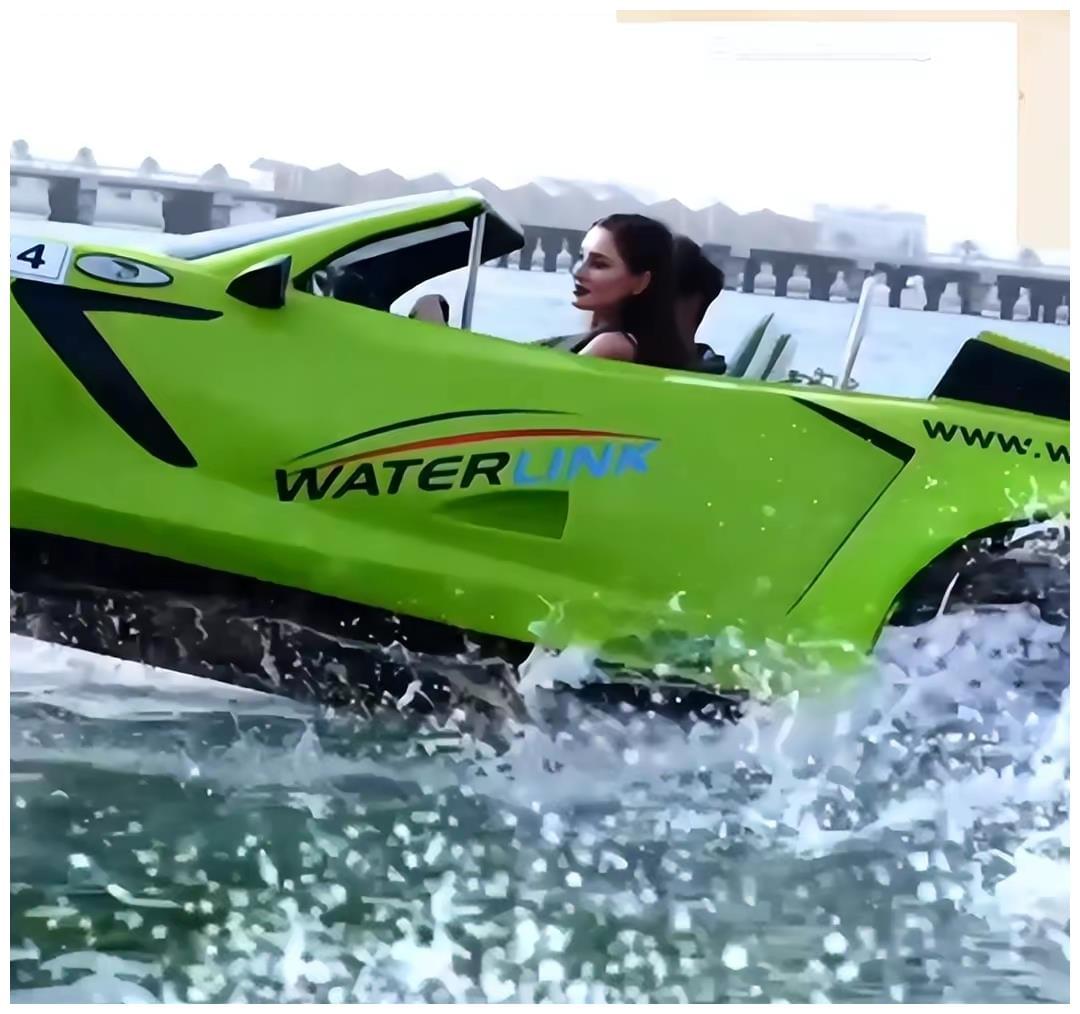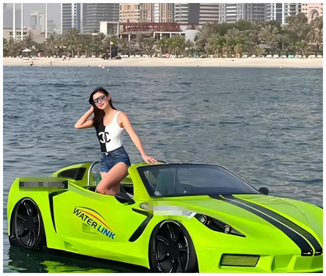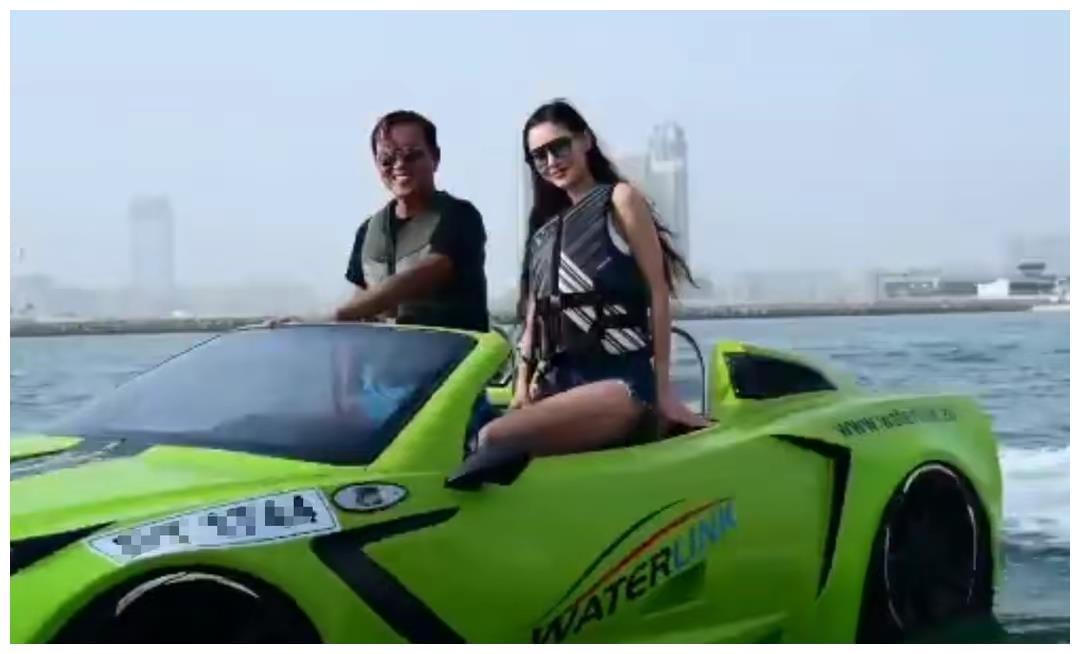 通过视频画面,我们可以清楚地看到,洪永时带着妻子Deborah,坐在一辆十分炫酷的水上跑车。整辆跑车的外观涂满了十分亮眼的绿色,在蓝色的海洋上奔驰的时候,远远望去真是一道十分亮丽的风景。敞篷式设计,不仅让它看起来更加的炫酷,而且还能够让车内的人视野更加开阔,而且更能感受到被海风吹拂和被阳光照耀的滋味。这才是来海边游玩的极致享受。