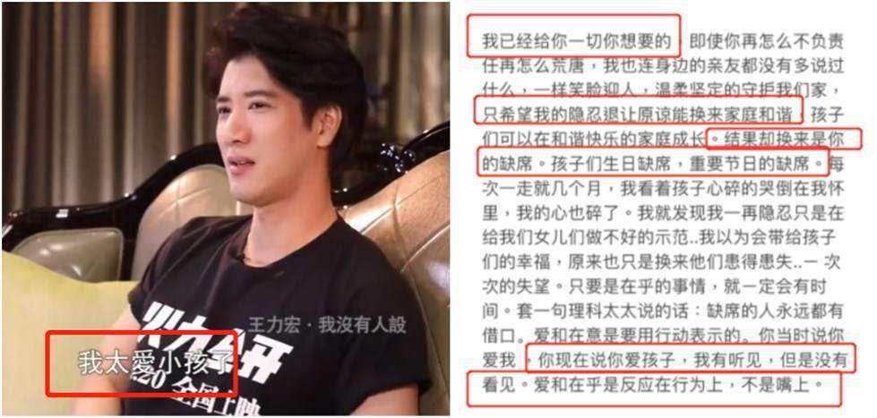 对于自己的婚姻,王力宏并不是很在乎。他对自己的老婆不照顾,也很不体贴,在自己和其结婚期间,他就一直在外面偷情,直到自己的老婆受不了了,这件事情才水落石出,而王力宏不但没有向自己的老婆赔礼道歉,还在网上和自己的老婆吵了起来。后来老婆拿出一套反驳他的话,让他说不出话来。