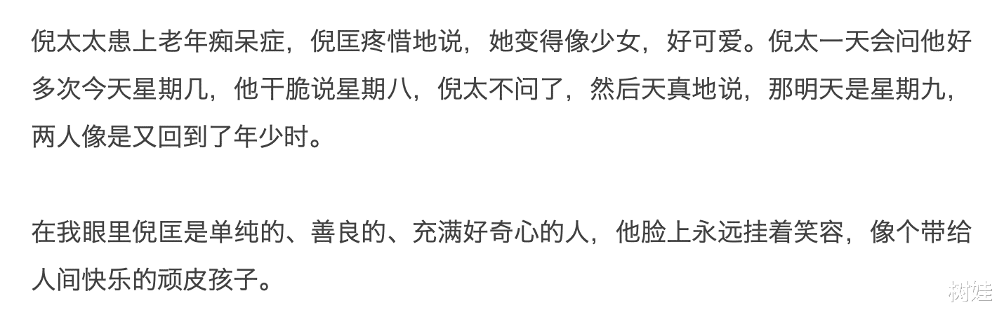 倪匡的家人遵照他的遗愿将后事从简,没有发讣闻,没有办任何仪式,对于不少对倪匡有真感情的人而言,这是遗憾的,毕竟还是希望有机会能够送别他最后一程,但是既然他已经表示从简,理应还是要尊重。而有心之人就算无法亲自送别,还是会以不同的形式表达哀思,比如林青霞,她受邀撰写了一篇悼念倪匡的长文,里面分享并回忆了她与倪匡为数不多的几次相见。文字真挚,充满了感情,她形容倪匡是带给人间快乐的顽童。