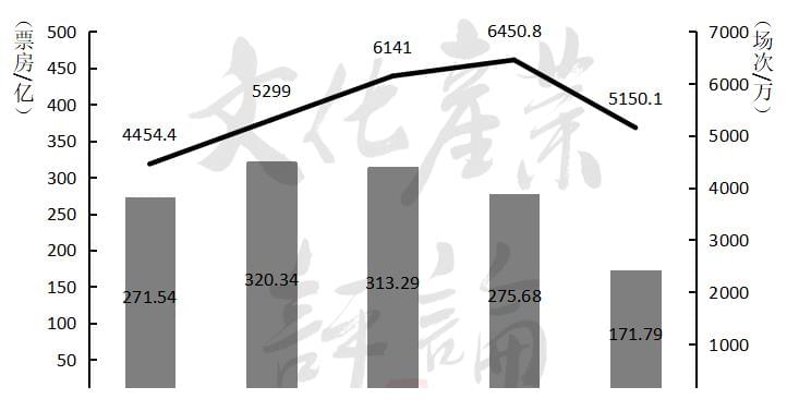 △2022年6月单日票房和营业影院数走势单看数据,市场确实表现出倒退根据猫眼专业版,上半年中国市场票房171.79亿,不含服务费为156.69亿,仅高于2014年同期(135.85亿)。共计181天,不含服务费的单日平均票房是8656.91万,也是仅高于2014年(7505.52万),是2015年以来的最低值。放映5150.1万场,低于2021年和2019年,与2018年同期(5299万场)相似,但票房只是2018年的53.62%,放映效率下滑明显。