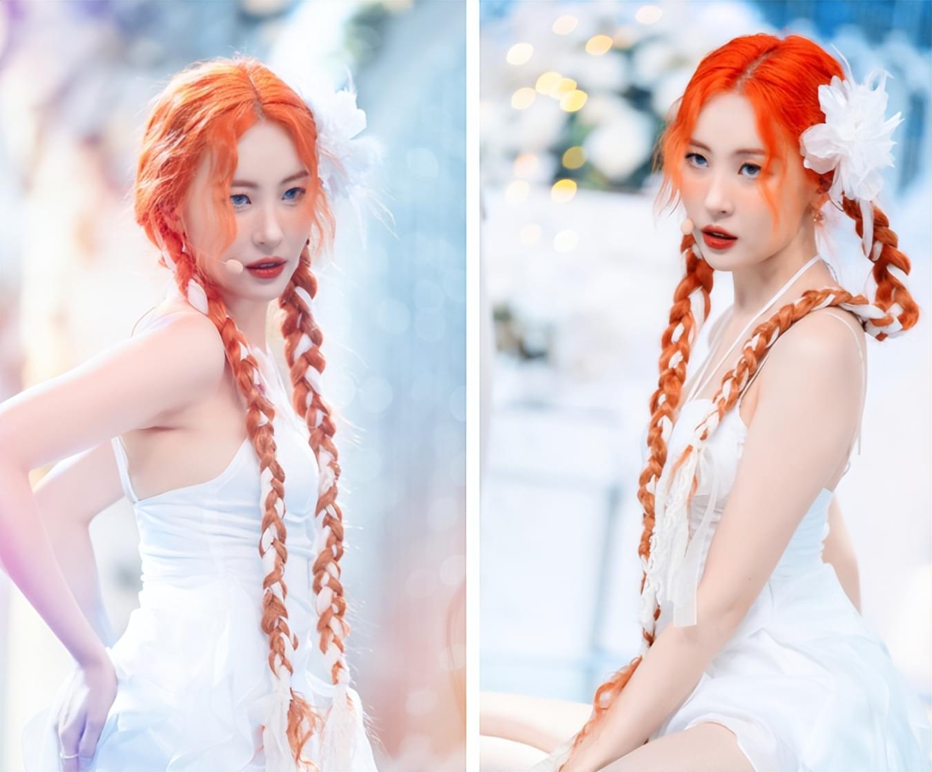 据悉,当天宣美其实正穿着这身服装在韩国的某档综艺节目进行打歌。打歌节目的她状态看上去非常好,为了上镜好看,腿上的淤青也都被宣美用遮瑕遮住,以至于粉丝当时根本看不出宣美有什么不舒服的地方。舞台上的宣美宛如一个精灵公主,圣洁又美丽。