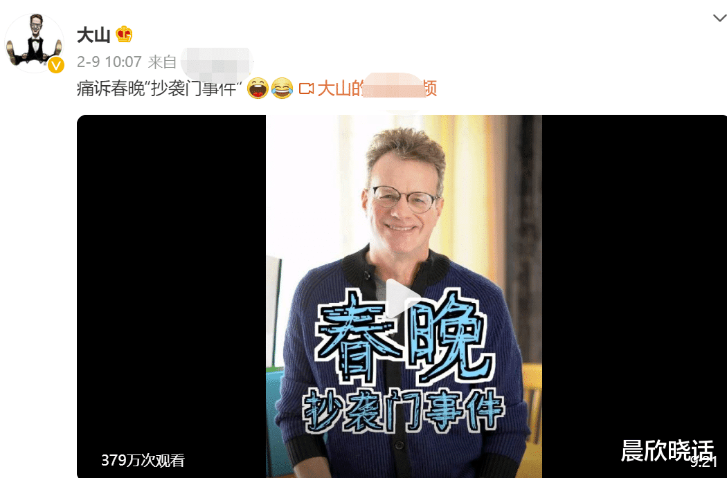 为了洗清师父的“嫌疑”,大山在网上发布了一段视频来回应姜昆“抄袭”一事。
