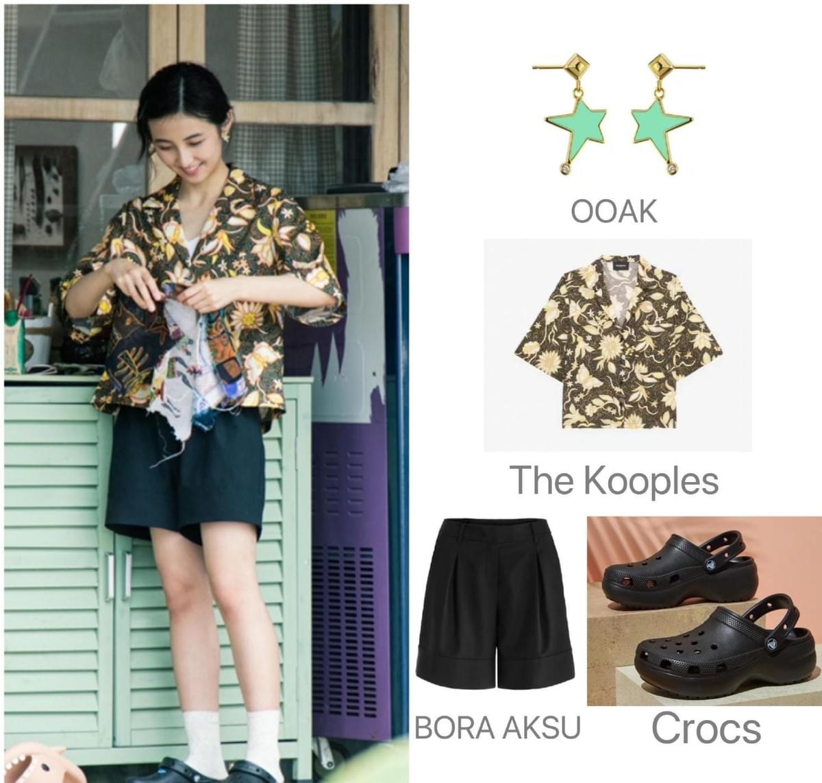 像张子枫这样选择碎花衬衫与五分短裤搭配,一身服装以深色调为主,穿起来酷飒时髦,不少气场,同时在深色碎花花纹的设计下,搭配起来中性风也愈来愈强烈,而在衬衫单品的文艺氛围感下,便可以轻松解锁潮流感穿搭,凹少年感造型。