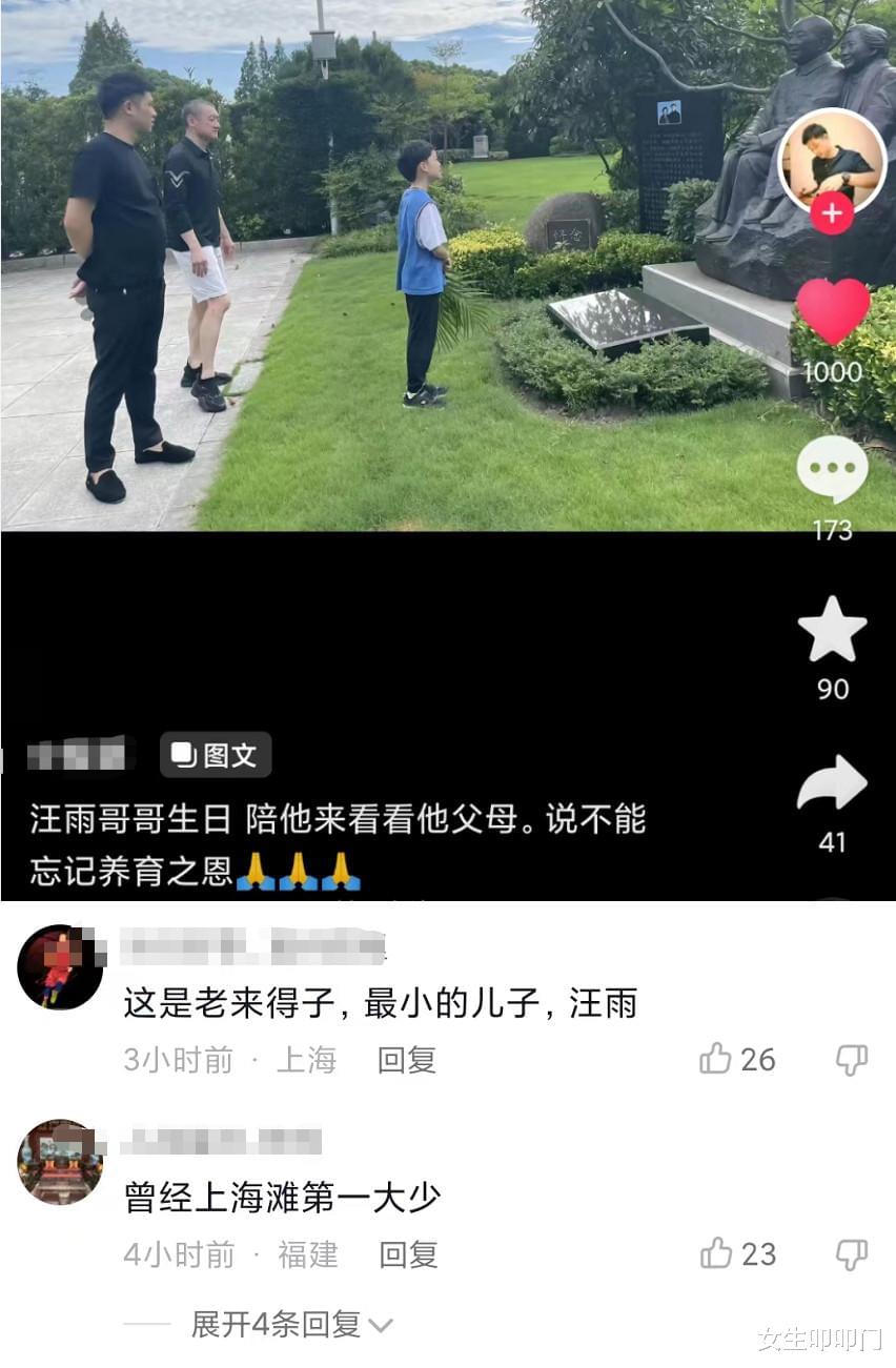 据汪雨朋友透露,适逢汪雨生日,他便陪着对方来拜祭父母,汪雨还说不能忘记养育之恩。