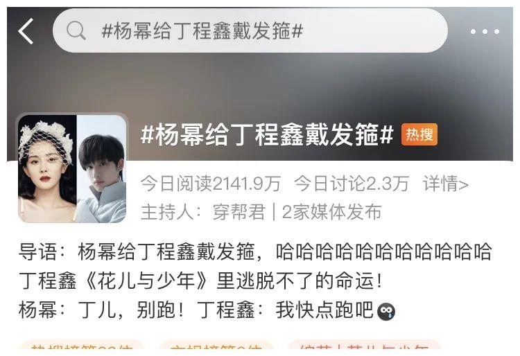 最近在《花儿与少年》一花絮片段中,杨幂给丁程鑫戴发箍,没想到他在外务中都没能逃过这命运,也太可爱了吧,并且丁程鑫在内心还说着要快点跑。