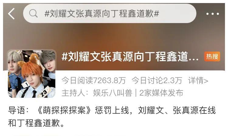 昨日张真源和刘耀文发布了动态向丁程道了歉,这也是在《萌探探探案2》中的游戏惩罚,没想到两人发的道歉文案真的好可爱,丁程鑫在评论区也有回复他们的道歉。
