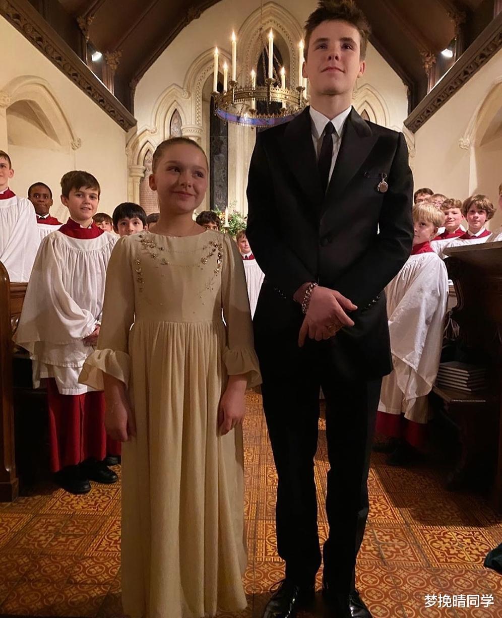 深蓝色吊带连衣裙本身也算是精致时髦的穿搭,袖子处的蕾丝设计很能彰显气质。不仅如此,深蓝色对于映衬肤色大有裨益,适合作为各个年龄段穿搭,简单而不老套。只不过贝克汉姆晒出的照片中小七消失的大门牙成为了美中不足之处。