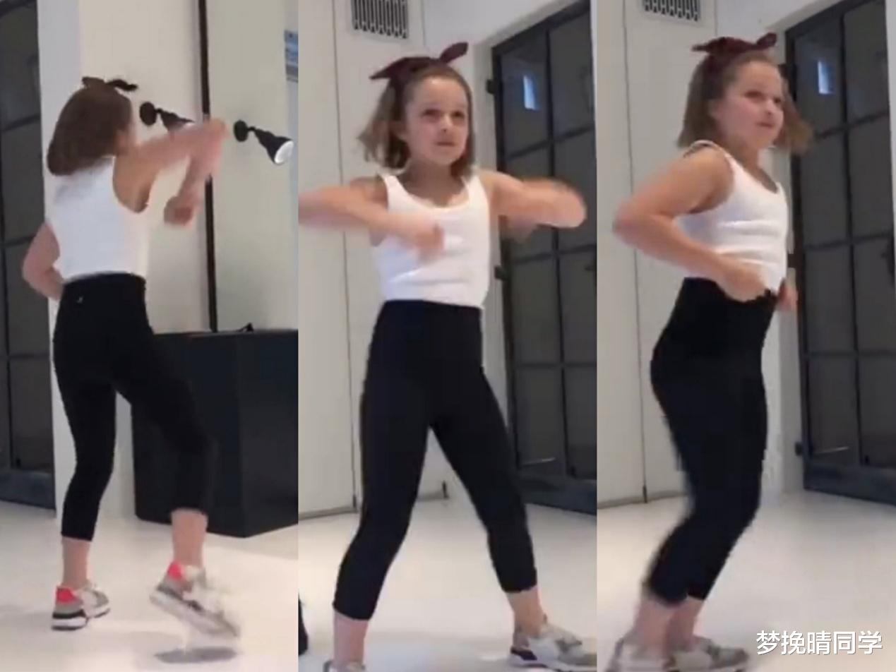 贝嫂眼中的小七是美好精致的典范,相比较下来,爸爸晒出的小七则变得"屌丝"了。白色运动背心搭配黑色紧身裤与运动鞋,大胆跳舞的动作充满活力,一边跳舞一边抽裤子女神形象全无。