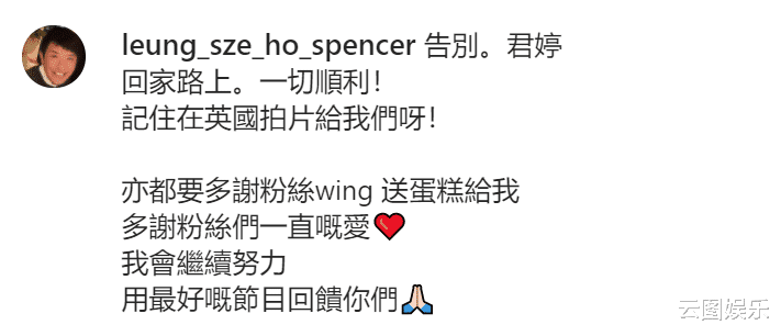 知名主持人梁思浩突然在社交账号上发文爆料,好友韩君婷将出国生活。他写道,告别,君婷,回家路上一切顺利,记得拍视频给我们啊。